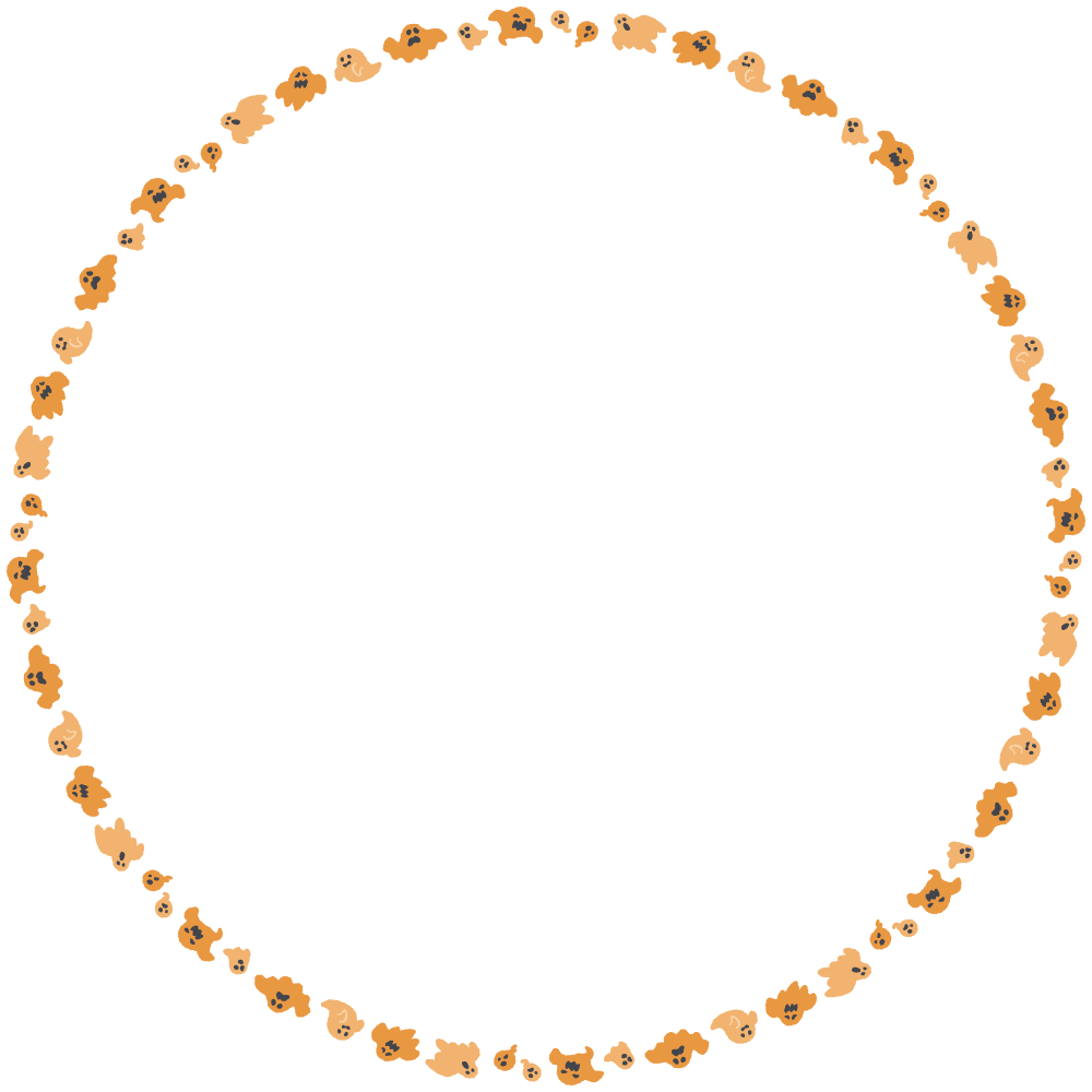 ハロウィンおばけの丸枠、丸フレーム素材