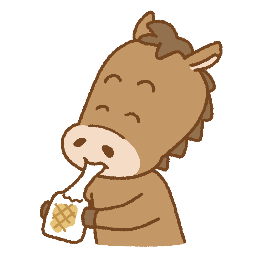 おもちを食べるウマのイラスト