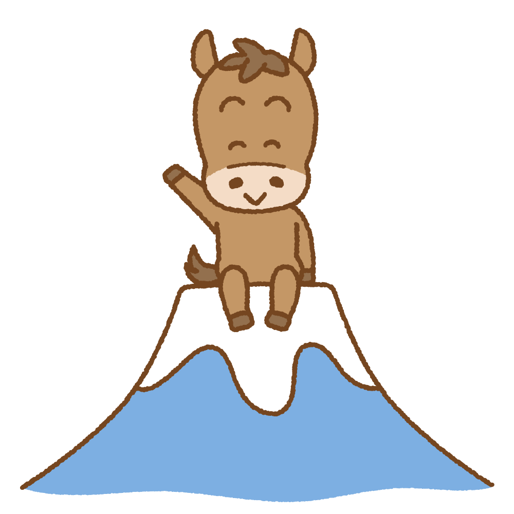 富士山の上に座るウマのイラスト